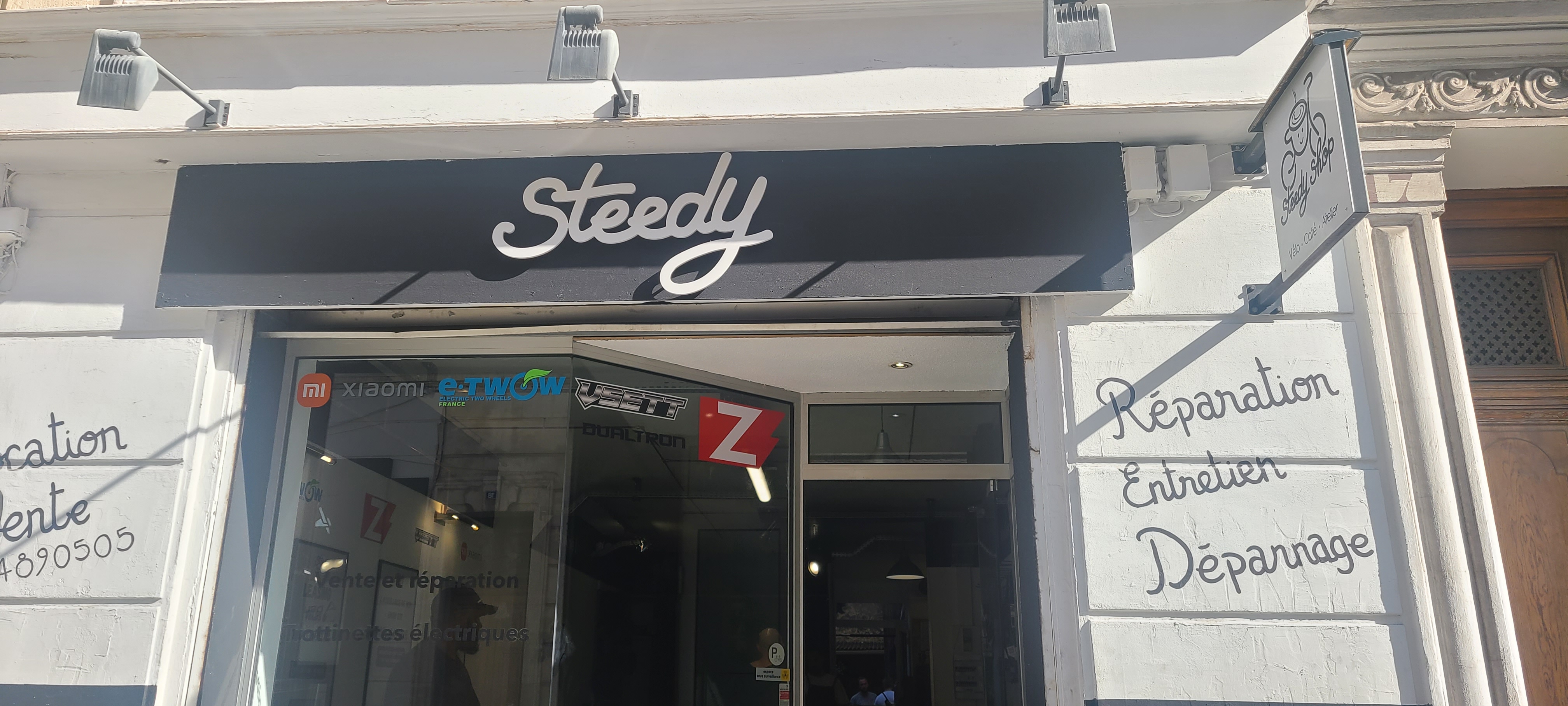 Prestation 5 🌟, acceuil, conseils, et réparation à la hauteur de la réputation de l'établissement. Rapidité et efficacité digne des paddocs des grandes écuries de F1 S'il y a bien un endroit où apporter votre trottinette et repartir sereinement c'est bien chez Steedy. J'ai même apposé l'autocollant de la boutique sur la trot'.